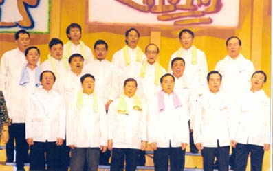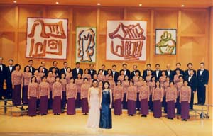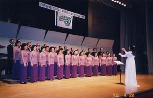 台灣合唱團是標準的男女混聲四部合唱團,現有團員七十餘名,分別來自各行各業,雖非全部音樂科系出身,但基於對台灣歌曲的熱愛,戮力學習,在歷任教授的用心指導下,十年來我們已累積了無數的演唱經驗,幾乎台灣最好的演藝場所,都有我門多次的演唱足跡,這包括了台北市的國家音樂廳、國父紀念館、國際會議廳、藝術教育館、新舞台、社教館、市府大禮堂、台電大樓、大安森林公園,及基隆、板橋、桃園、中壢、新竹、苗栗、台中、豐原、彰化、嘉義等文化局、文化中心。1998年我們應邀參加澳門音樂節,代表台灣與大陸北京、香港、澳門等兩岸三地最佳合唱團同台演出,1999年我們遠征加拿大多倫多演出,2000年更應邀赴美國聖地亞哥、聖荷西巡迴演唱,深獲外國友人及華僑歡迎,掌聲不斷。2000年這一年中,國內外就演出了十八場,廣受各界好評,成果媲美職業合唱團。 |